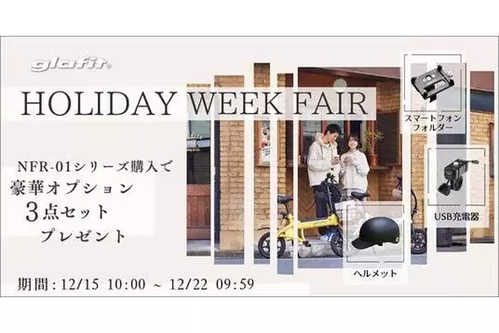 電動パーソナルモビリティの開発・製造販売をワンストップで手がけるglafit株式会社(読み:グラフィット、本社:和歌山県和歌山市、代表取締役社長CEO:鳴海 禎造、以下、glafit )は、公式オンラインショップにて、12月15日(月)10:00から12月22日(月)9:59まで「HOLIDAY WEEK FAIR」を開催します。
