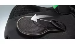 従来モデルでは肩ベルトカバーの上側のみ肩パッドを取り付けていましたが、本製品では肩ベルトが汚れないようぐるっと包み込む形状に。ふわふわのクッションがお子様の頬や首にフィットするので快適です。また、簡単に取り外して洗濯機で洗えるため衛生的に使用できます。