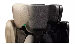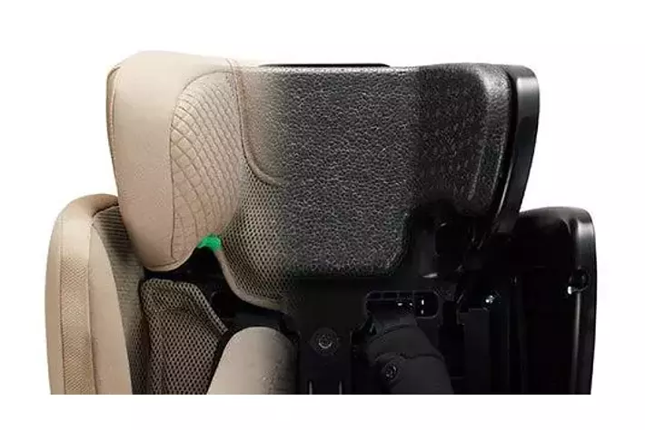 ヘルメットなどで使用される衝撃吸収力の高い発泡材をヘッドクッションに採用し、側面衝突での頭部への衝撃を軽減。前後だけでなく側面の衝撃からもお子様をしっかりガードします。