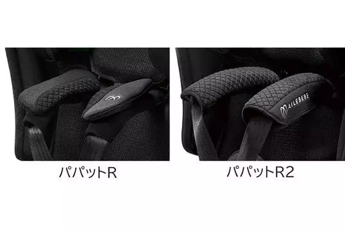 株式会社カーメイト(本社:東京都豊島区)は、ベビー用品ブランド「AILEBEBE(エールベベ)」より、スムーズな乗せ降ろしを追求したチャイルド&ジュニアシート「エールベベ・パパット」シリーズから、新モデル「エールべべ・パパットR2」を2025年12月5日(金)に発売いたしました。本製品は、従来モデルより肩ベルトを最大約20cm長くすることで、お子様の腕を通す空間が広くなり、乗せ降ろしがしやすくなりました(上写真)。また、お子様の頬や首にフィットする“ふわピタ肩パッド”で快適さも向上。その他の進化した特長や詳細は以下をご覧ください。
