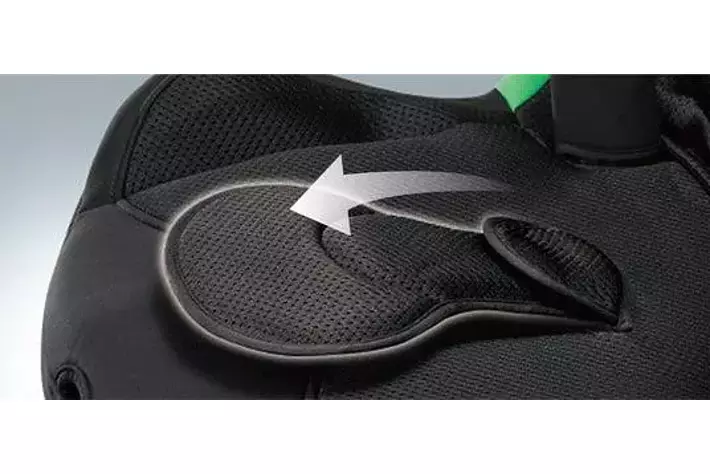 チャイルドシート「クルットR」シリーズで採用実績のある、股ベルト(バックル部)が前傾を維持する縫製カバーを採用。バックルがお尻の下敷きになる煩わしさがなくなり、お子様をより乗せやすくなります。