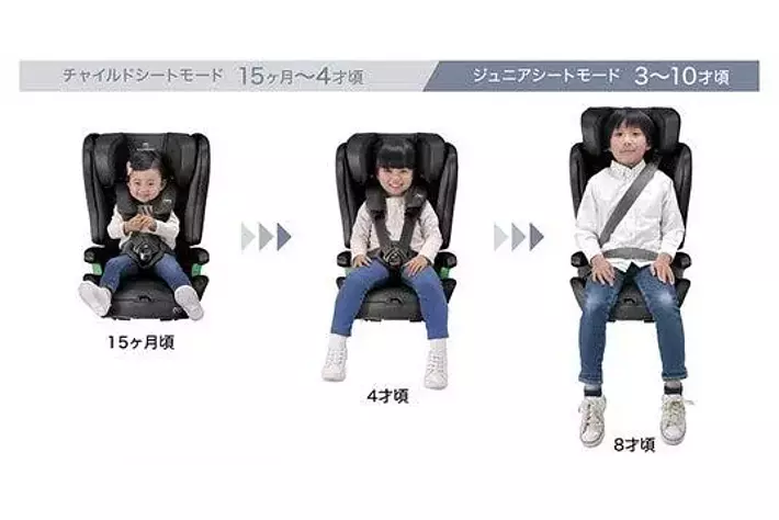 チャイルドシートモード:身長76cm以上-105cm以下、体重20kg以下、月齢15ヶ月を超えてから
