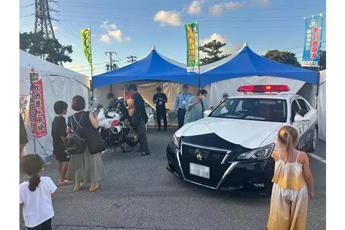 一般社団法人日本自動車連盟(JAF)の「子ども安全免許証」の発行や、警察署によるパトカー白バイ展示、消防車展示は子供達に人気となっており記念撮影をする様子が多く見られました。