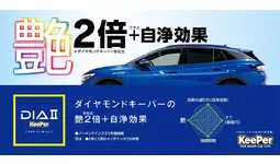 テレビCMでも放送中のこのコーティングは、KeePerの原点である「ダイヤモンドキーパー」を大きく進化させたモデルで、従来比2倍の艶と、雨が降れば、まるで洗車したかのようにキレイになる自浄効果を備えています。(KeePer技研株式会社公式サイトより)