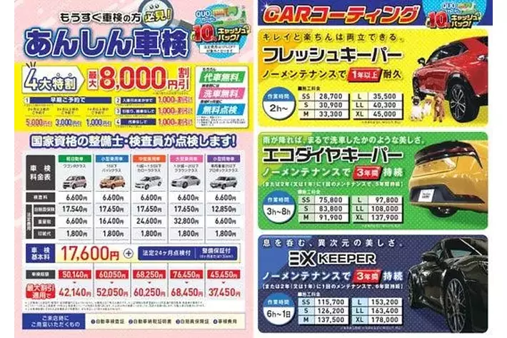 対象商品:タイヤ、コーティング、車検(法定費用除く)、オイル交換、その他のカーケア商品 など