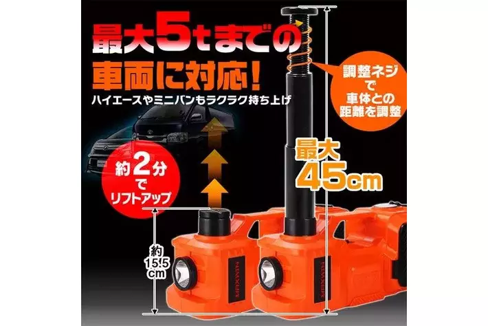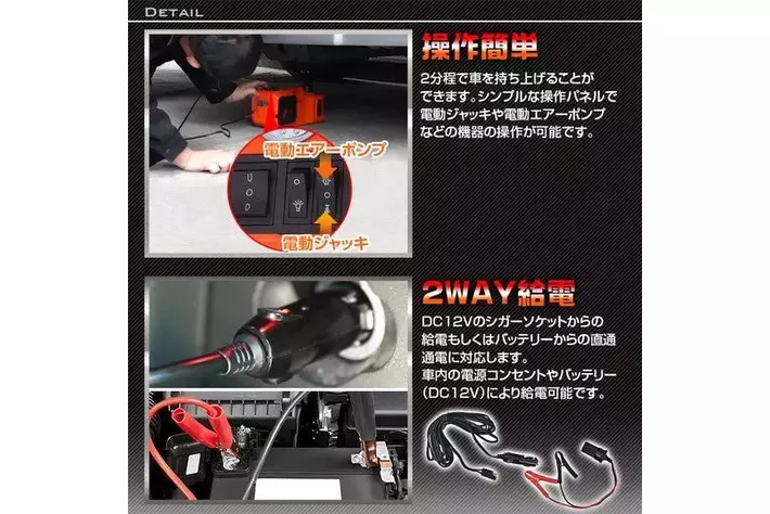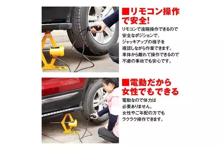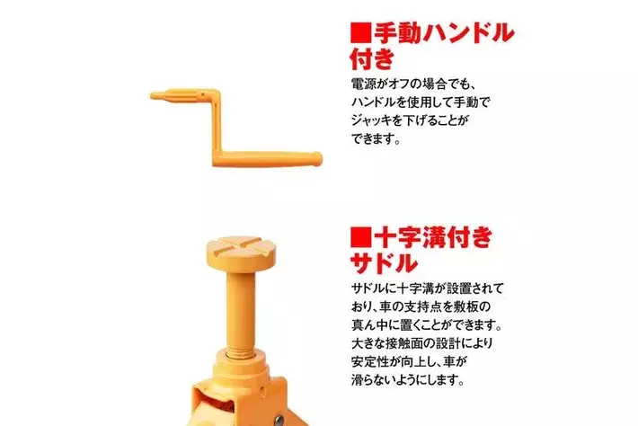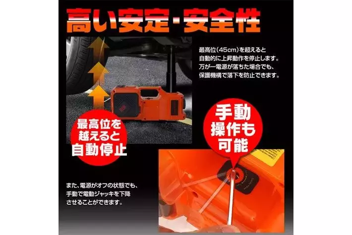 シンプルな設計なので専門知識が無くても簡単に使える電動ジャッキです。