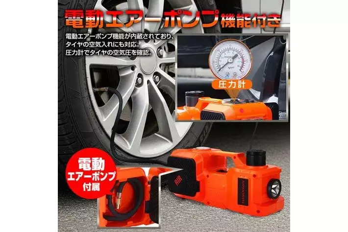 電動エアーポンプ機能が内蔵されており、タイヤの空気入れにも対応。