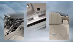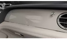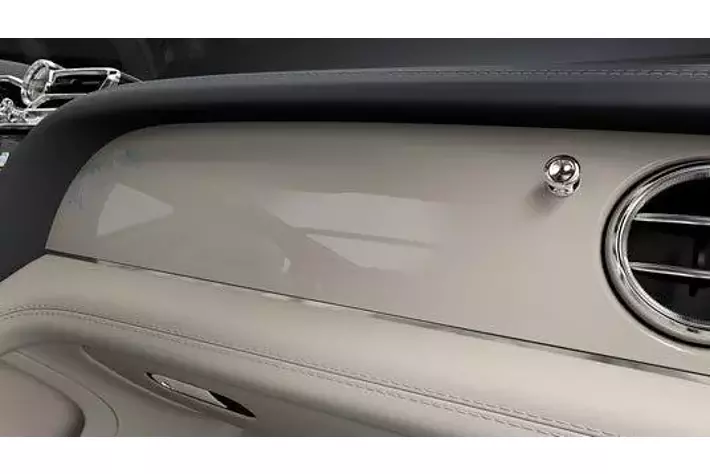 さらに、「Something Blue」のテーマを象徴するライトブルーのアクセントを随所に配しています。シートおよびヘッドレストのパイピングとステッチ、ベントレーウィングの刺繍、ディープパイルのオーバーマットの縁取りに至るまで繊細なブルーをあしらい、クリーンな基調色の中に凛とした華やぎを添えています。助手席側のIPフェイシアには、ブルーベル(日本名:ツリガネズイセン)をモチーフにしたクローム&ブルーのビスポーク・オーバーレイをレイアウト。花言葉である「変わらぬ愛」に想いを重ねた花のシルエットが静かに浮かび上がり、インテリア全体の世界観を象徴的に彩るとともに、特別なコレクションであることをさりげなく物語ります。