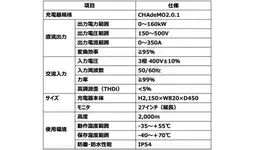 27インチの大型ディスプレイを搭載した「EV急速充電器」は日本初。上の画像のようにキャラクターを使ったゲーム感覚の表示も可能で、給電状況以外にもさまざまな情報を表示することができ、将来的には設置場所周辺の観光スポット案内や緊急時の災害情報などにも対応が可能です。