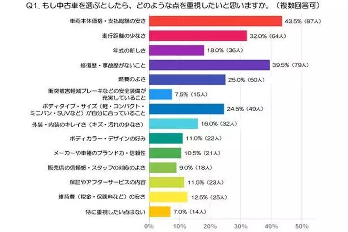 Q1. もし中古車を選ぶとしたら、どのような点を重視したいと思いますか。(複数回答可:注1)