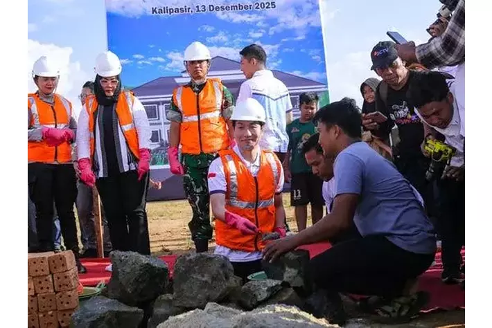 インドネシアの伝統にのっとり礎石を配置、竣工までの安全を祈願