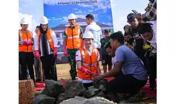 インドネシアの伝統にのっとり礎石を配置、竣工までの安全を祈願