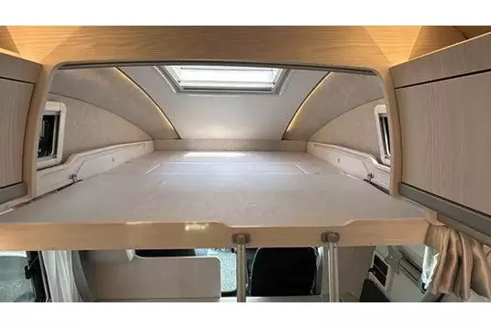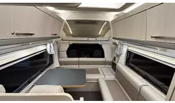 セカンドシートとサイドシートの背もたれを通路に埋め込むことで長さ1800mm×幅1860mmの広大なベッドスペースが生まれ、大人3名がゆったり就寝できるレイアウトとなります。バンクベッドにも近い一体感があり、家族で一日の旅を振り返りながら、笑い声が聞こえてくるような温かな空間になっています。