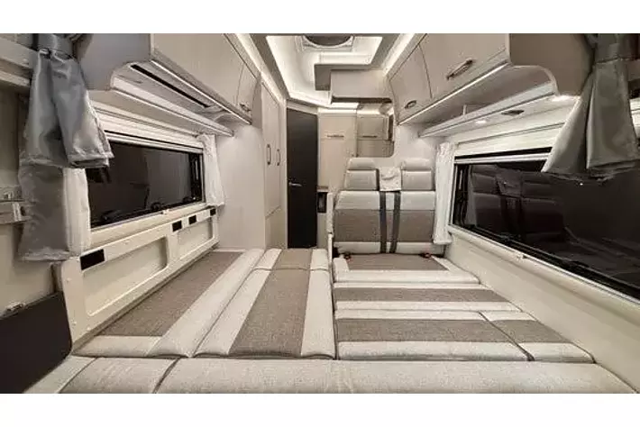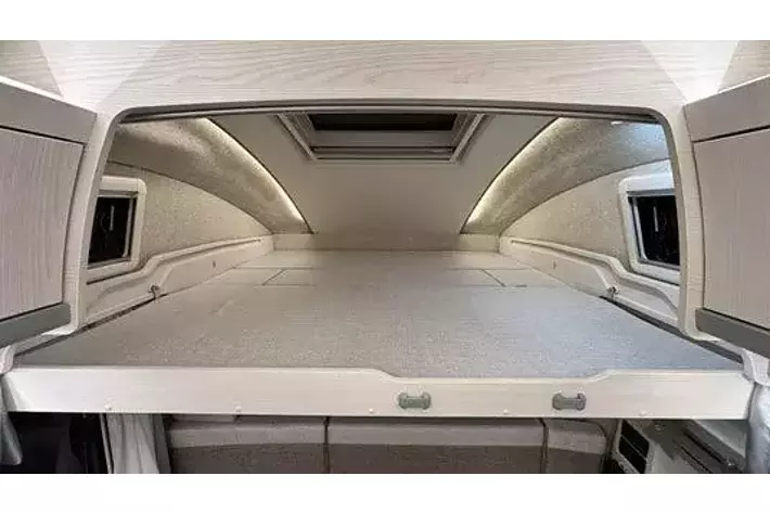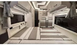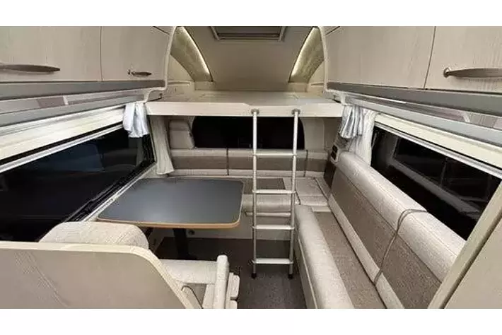 バンクベッド:長さ1940mm×幅1740mmの広々とした伸縮式バンクベッドで、大人2名が就寝可能。バンクラダー、読書灯、コンセント、間仕切りカーテンを備え、くつろぎの時間を提供します。
