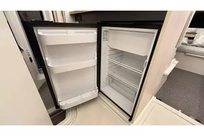 冷蔵庫:横開き式85L(冷凍庫12L付)を装備しています。エントランスからもすぐに取り出しやすく便利です。