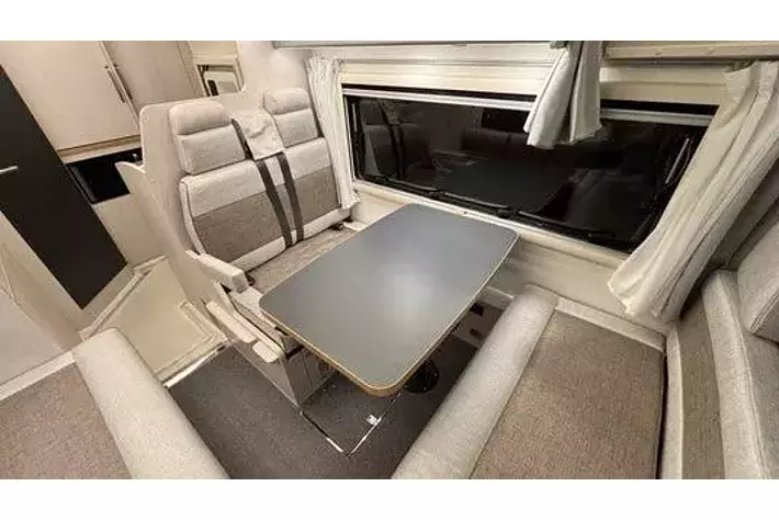 テーブル:高さ調節とスライドが可能なマルチ昇降・スライド式の大型テーブル。足元にはスマートフォンを充電できるコンセントを配置。さらに温風ヒーター吹き出し口もあり、床暖房と併せて足元から暖かい。