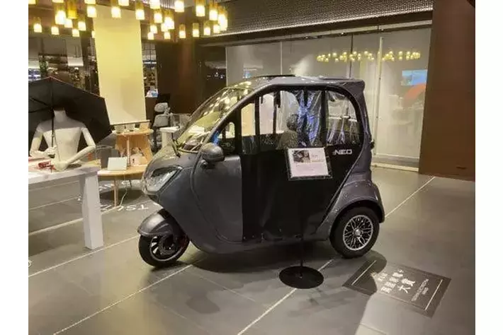 e-NEOは、造船の設計思想と金属加工技術をルーツに持つ株式会社ダイゾーが開発した3人乗り電動モビリティ。