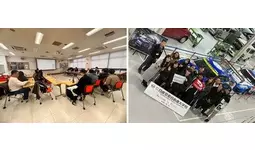 ツアー初日は、日産京都自動車大学校を訪問。整備実習施設や最新設備の紹介に加え、実際に学生が整備作業を学んでいる現場を間近で見学しました。プロを目指す学生たちの真剣な姿勢や、細部まで行き届いた実習環境に、参加者からは驚きの声が上がりました。