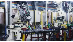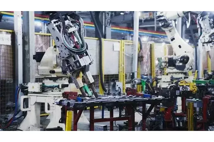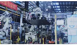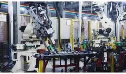 Liuzhou Yinrui Automotive社の製造工場内には、高速産業用溶接ロボットが整然と並んでおり、現代の自動車生産に求められるスピードと精度を物語っています。
