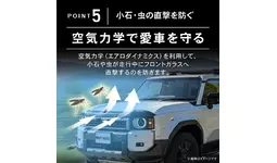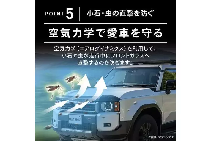 空気力学(エアロダイナミクス)を利用して、小石や虫が走行中にフロントガラスへ直撃するのを防ぎます。