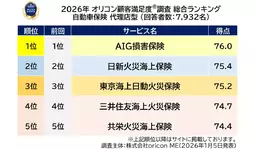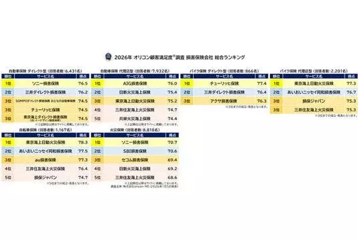 オリコン株式会社(本社:東京都港区 代表取締役社長:小池 恒、略称:オリコン)は、グループ会社である株式会社oricon MEが、実際のサービス利用者を対象に第三者の立場で実施した“損害保険会社”についての顧客満足度調査の結果を、2026年1月5日(月)14時に「オリコン顧客満足度(R)」公式サイト内にて発表いたしました。ランキングは以下の通りとなりました。