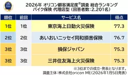『バイク保険 代理店型』『自転車保険』で【東京海上日動火災保険】が総合2冠を獲得『自動車保険 代理店型』で【AIG損害保険】が5年連続7度目の総合1位