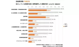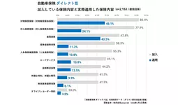 ダイレクト型の自動車保険に加入しており、保険を適用したことのある利用者2,153人に「加入している保険内容と実際適用した保険内容(複数回答)」について聴取したところ、加入している保険では「対物賠償保険(82.4%)」が最多となり、次いで「対人賠償保険(77.9%)」が続きました。適用率では「対物賠償保険(48.1%)」が最多、次いで「車両保険(43.5%)」が続き、どちらも適用率で唯一4割超えとなりました。 一方で、その他の補償内容は、いずれも15%以下と、比較的低い適用率となりました。