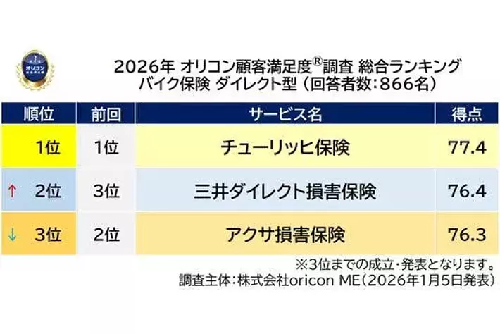 2026年 オリコン顧客満足度(R)調査 バイク保険 ダイレクト型