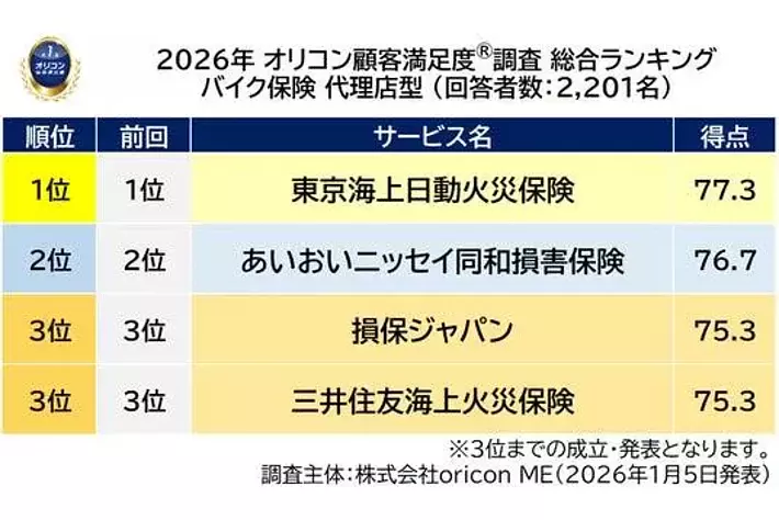 2026年 オリコン顧客満足度(R)調査 バイク保険 代理店型