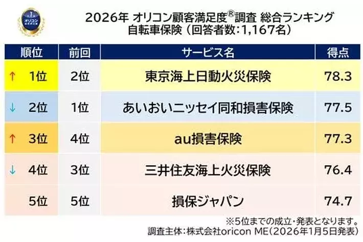 『自転車保険』総合ランキング(2026年 オリコン顧客満足度(R)調査)