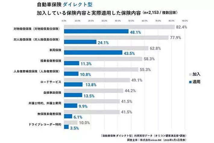 『自動車保険 ダイレクト型』加入している保険内容と実際適用した保険内容 (2026年 オリコン顧客満足度(R)調査)