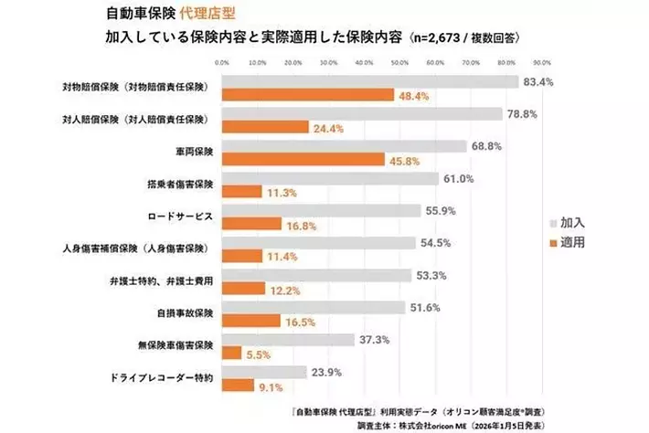 『自動車保険 代理店型』加入している保険内容と実際適用した保険内容 (2026年 オリコン顧客満足度(R)調査)