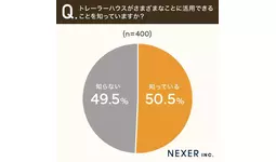 50.5%と半数以上が、トレーラーハウスの活用法が多岐にわたることを「知っている」と回答しました。