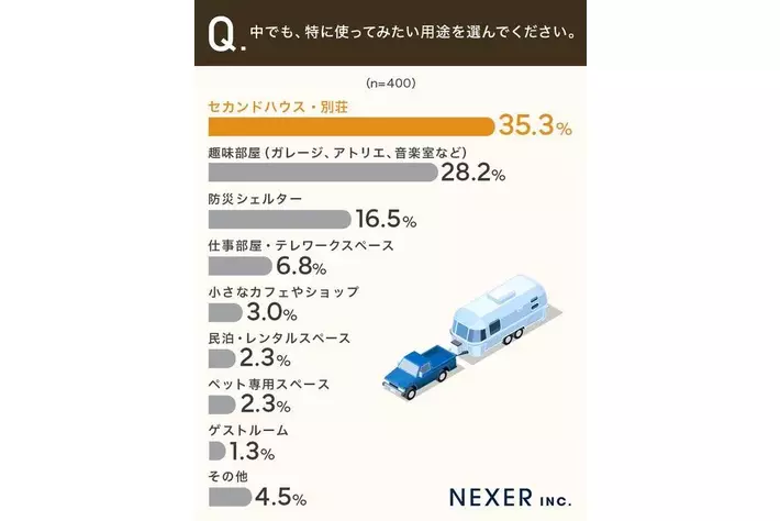 この結果から、トレーラーハウスには「日常から少し離れて過ごす空間」としてのニーズが高いことがうかがえます。