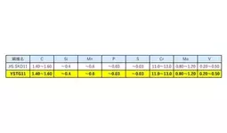 JIS SKD11規格適合の従来材と同条件で比較でき、品質を担保したままコストの最適化が可能に。