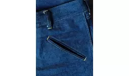 デニムには珍しい袋ポケット。最深部で約21cmと深めに設計。中の布(スレキ)がお尻に追従し長時間ライドになるほど効果を発揮。