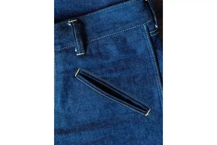 デニムには珍しい袋ポケットと膝裏は立体裁断