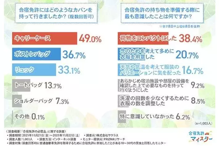 【合宿免許の持ち物実態を調査】準備の際に意識したことは「荷物をコンパクトに」!「持って行ってよかった」「なくても困らなかった」リアルな荷造り事情を公開