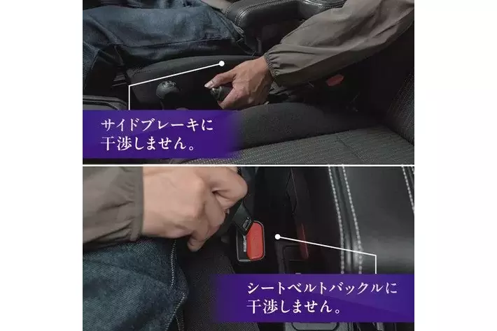 - サイドブレーキに干渉しません。- シートベルトバックルに干渉しません。