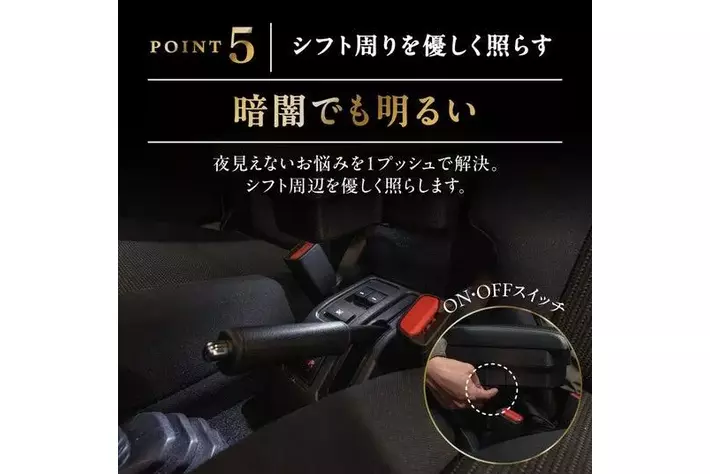 夜見えないお悩みを1プッシュで解決。シフト周辺を優しく照らします。