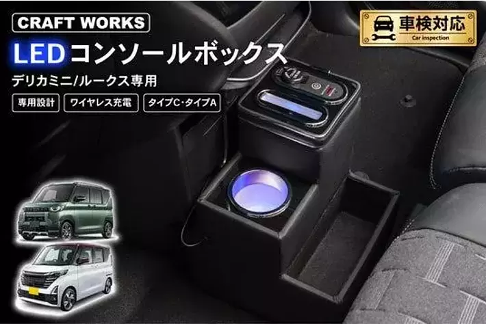 デリカミニ/ルークス 専用 LEDコンソールボックス予約開始。車種専用設計で、まるで純正のようなフィット感。抜群の収納力で、快適な車内空間を提供。スッキリ充電体験でデザイン性・使いやすさを実現!