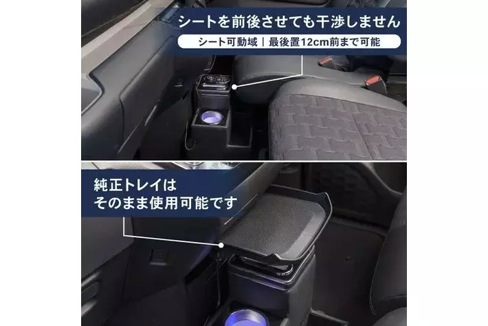 シート干渉なし、純正トレイ使用可能