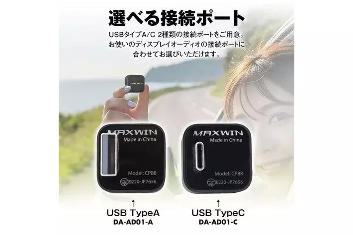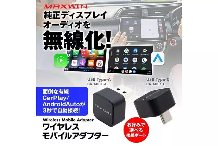カー用品ブランドMAXWIN(運営:昌騰有限会社、所在地:大阪府泉大津市)は、車の乗車時に面倒なディスプレイオーディオの有線CarPlay/AndroidAuto接続が挿すだけ解消できる僅か2.2cmの超小型ボディCarPlay&AndroidAutoワイヤレスアダプター『DA-AD01-A』『DA-AD01-C』の発売をお知らせします。
