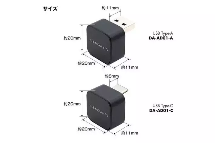 サイズ:縦(約)20mm×横(約)20mm×高さ(約)11mm(USB端子を除く)