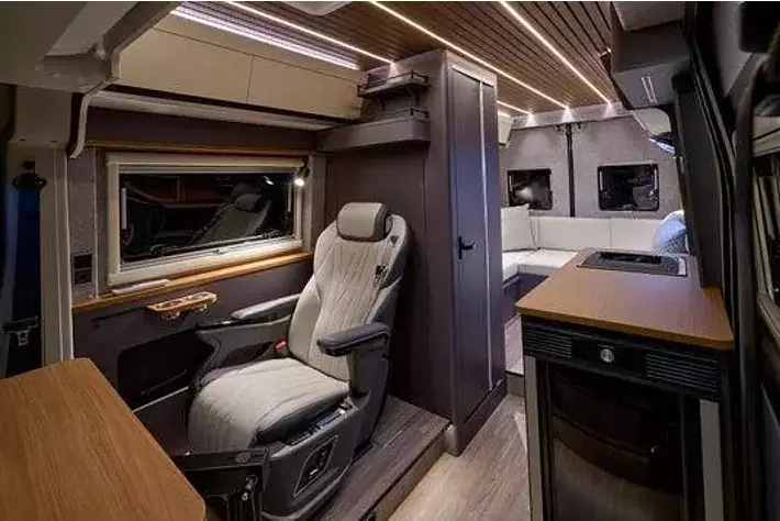 1. 業界でも極めて珍しい“電動マッサージチェア搭載”キャンピングカー