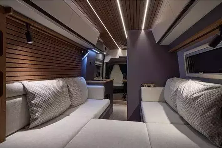 欧州車を思わせる上質なインテリア シートバックのゆったりしたクッションは取り外しが可能。就寝は3名