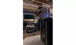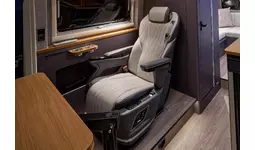 セカンドシートは敢えて1名のキャプテンシート。電動マッサージチェアが旅の疲れを癒す。落ち着きのあるシックな佇まいのインテリア。