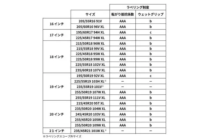 - タイヤラベリング制度で最高グレードのAAA(1)を獲得