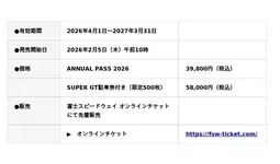 ▶ URL: https://fujispeedway.jp/motorsports/article/annualpass企業プレスリリース詳細へ
