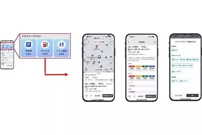 ドライブ中によく利用する施設(駐車場、ガソリンスタンド、トイレ)を、より細かい条件を指定して探せるようになりました。周辺施設を検索・表示した後、混雑状況や価格、設備などの条件を指定して検索・絞り込めるため、自分の希望に合った施設を簡単に見つけられます。また、施設の詳細情報を事前に確認できるので、「行ってみたら使えなかった…」といった無駄な立ち寄りが減り、安心で快適なドライブを楽しめます。